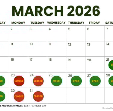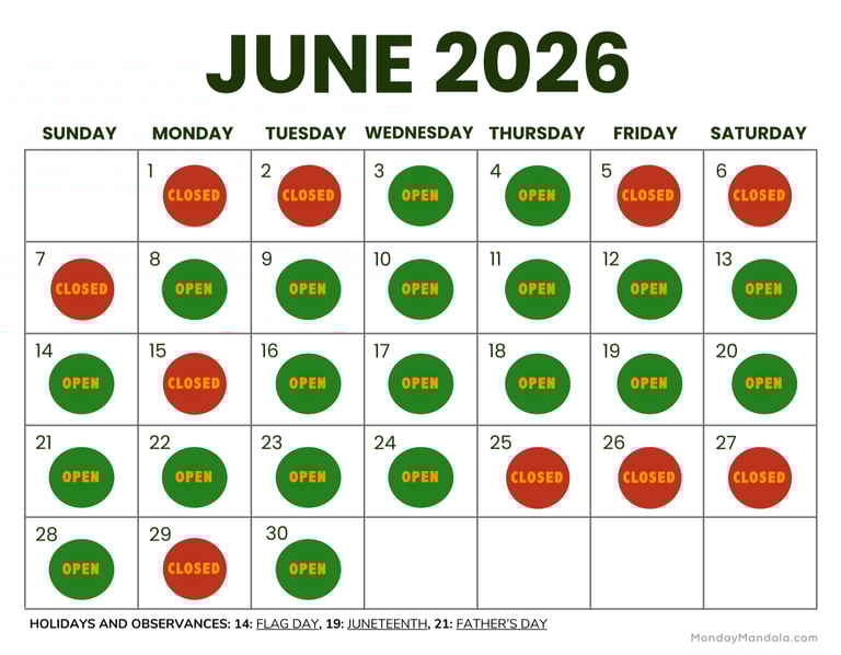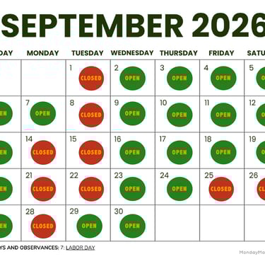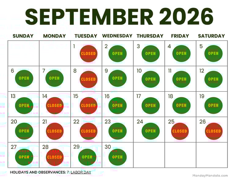 *See Calendar for Exceptions