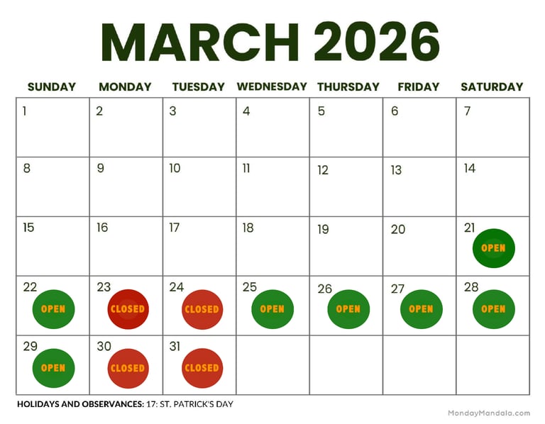OPENING HOURS*