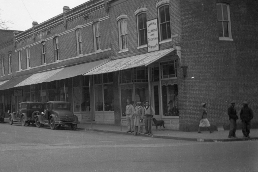 OUR BUILDING, THEN A CLOTHING STORE, WITH SOME WELL-DRESSED MEN, CIRCA 1930.